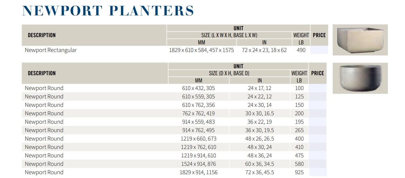 This classic has stood the test of time. The Newport planter features a subtle design that allows its contents to take center stage. It is available in a full array of shapes and sizes that will suit your needs.