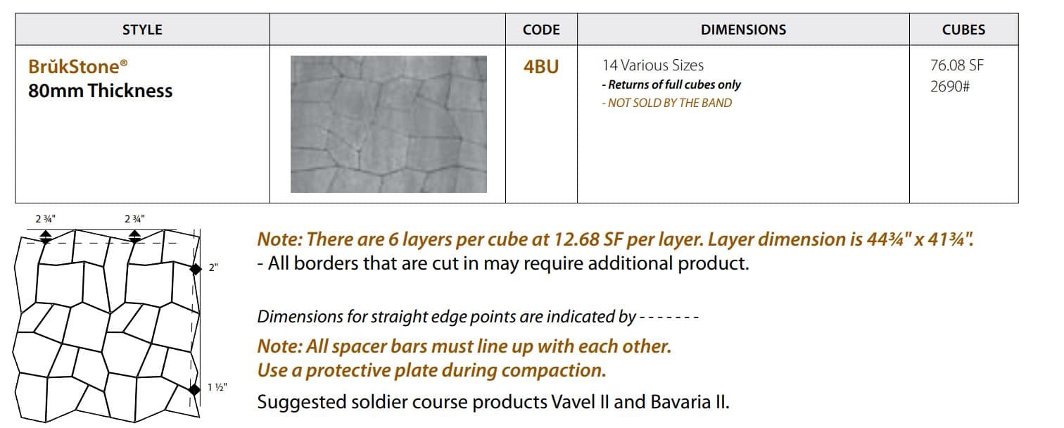 Introducing BrukStone, the new family of pavers designed with the elements of natural stone in mind. Not just any ordinary paver, the textured top and irregular sizes will harmonize with any desired setting. Made in rich earth tone colors and various sizes, the BrukStone delivers a pavement that gives you the look and feel of Mother Nature. Its unique design allows for hand or mechanical installation.