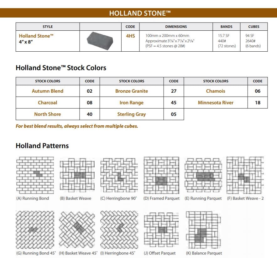 Holland Stone has the renowned durability of interlocking paving stones, yet offers the charm of a simple rectangular shape. It is simple in design, yet capable of meeting the demands of architects and designers for a beautiful, durable, textured paved surface. This rectangular stone can be applied in a number of fascinating patterns – like the popular herringbone pattern – to create warm textures. You can create a classic look with the simplicity of a one stone design.