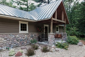 A timeless blend of gray, beige, salmon, and brown colors. This cobblestone is a beautiful option for a classic stone veneer