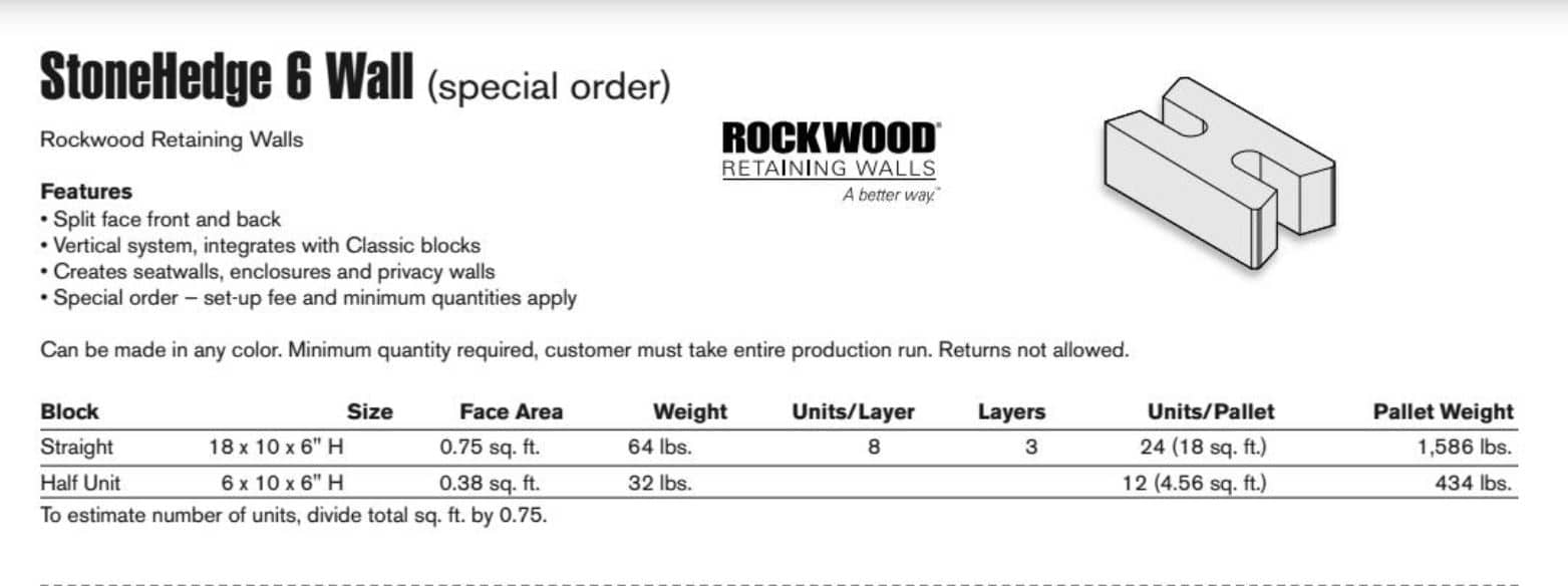 Capable, durable, and attractive, StoneHedge® 6 is the ideal product for any freestanding wall. StoneHedge can be used to construct unique applications such as privacy walls, seat/bench walls, partition walls and more. It’s unique design integrates with Classic® 6 retaining wall blocks to create one of the most versatile products in the industry.