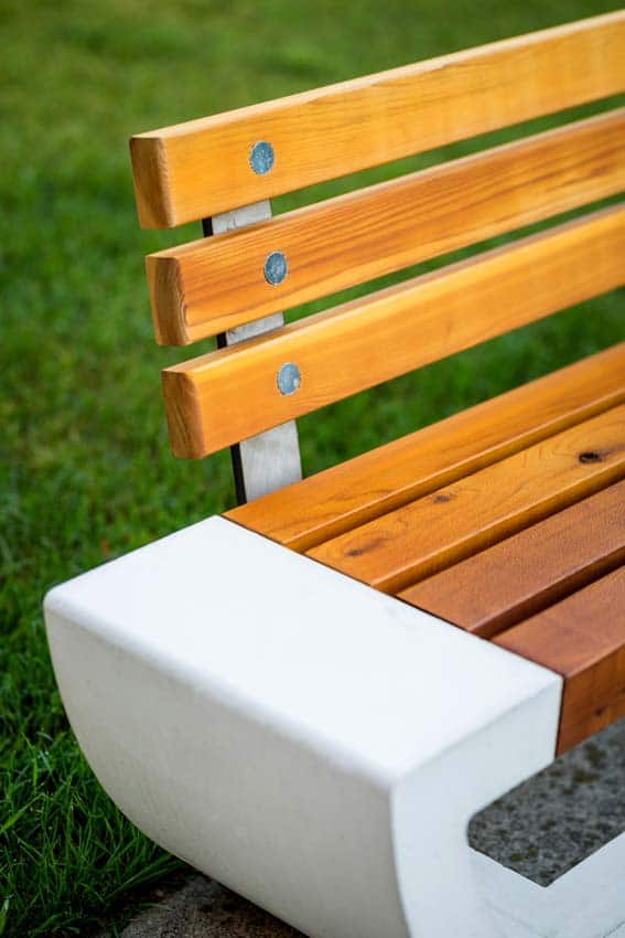 Using a wet cast method, the Cast Bench is made by curing wet concrete in a mold and attaching the cedar seat to the base. Available in Natural, Grey, Charcoal and White. Wood is available unstained or in Charcoal and Golden Cedar stains.